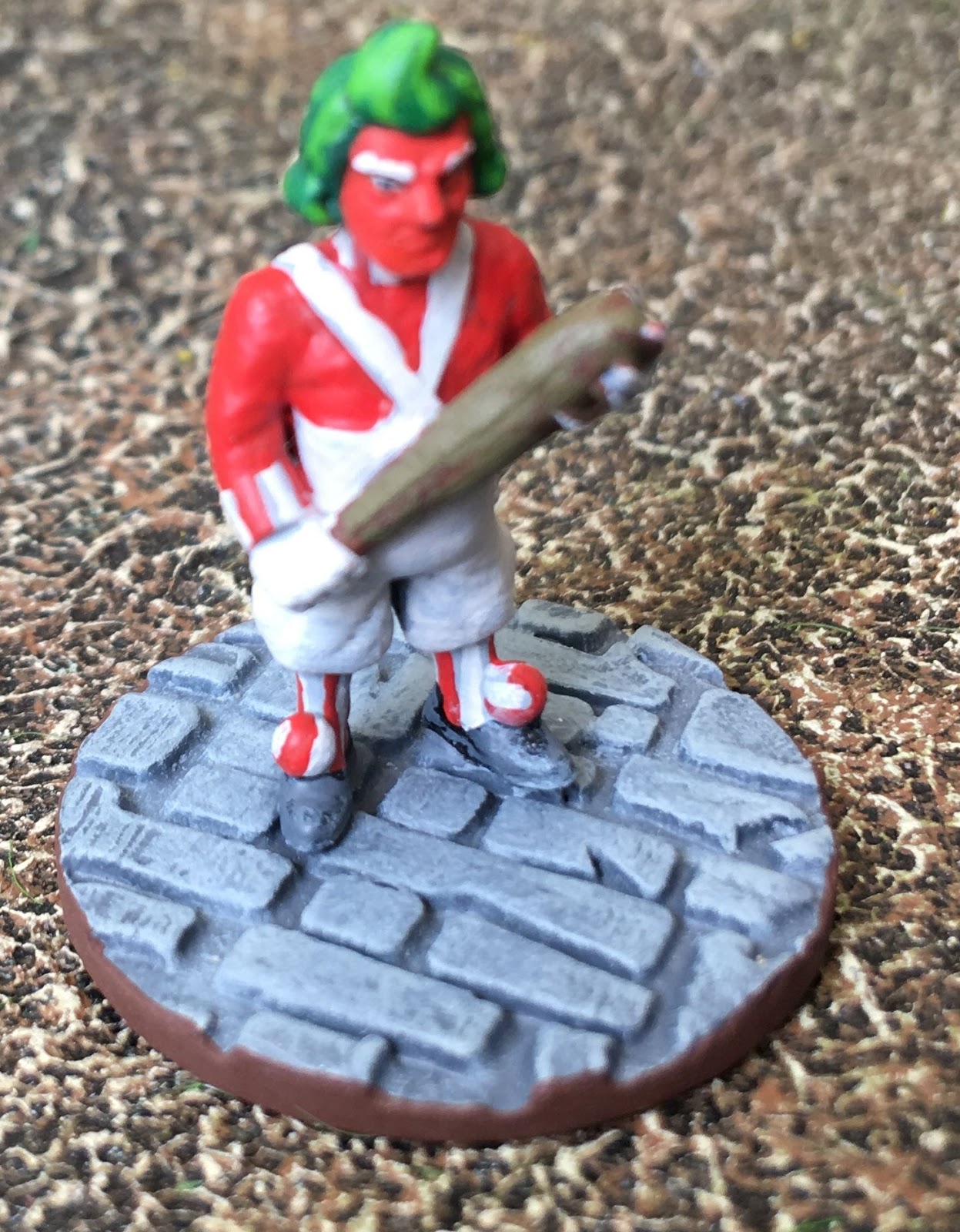 Warbases forklift. Upgraded with some card and a scratch built pallet. Left it empty so I can add crate/barrel/pallet stacks.